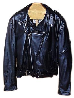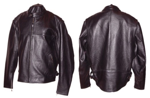 Mens motorcycle jacket with zipper and belt. #8901 has fringes on back