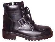 Cowhide leather. Side zipper for easy entry. Fully functional front laces. Bucktex lining. Thick
